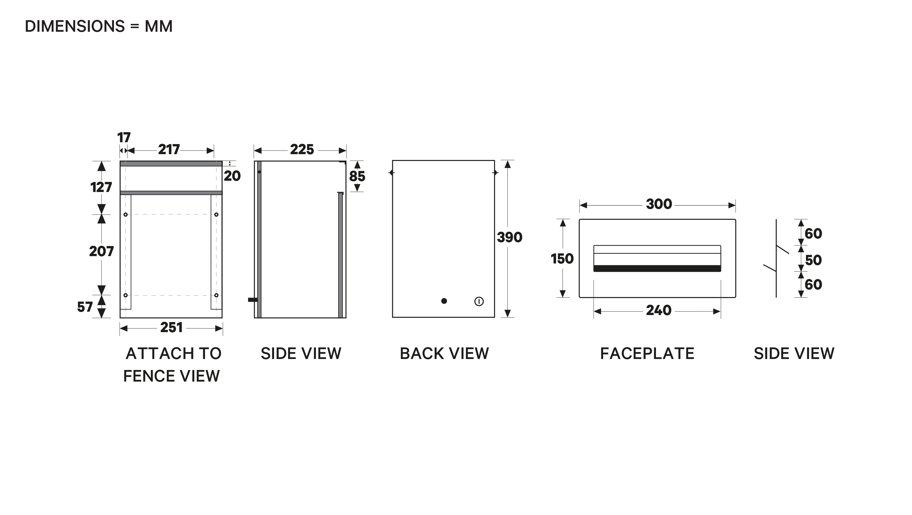 - Ideal to mount behind a fence, with powder coated faceplate for street frontage